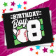 Ce design de fête d'anniversaire de baseball est parfait pour une fête sur le thème du baseball pour un garçon de 8 ans pour célébrer son 8ème anniversaire ! Idéal pour les enfants qui aiment jouer au baseball, regarder le baseball ou les futurs joueurs de baseball ! Comprend un graphique de balle de baseball sur un terrain de baseball avec le numéro 8 pour les 8 ans d'un garçon.