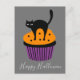 Halloween chat noir mignon sur cupcake. Couleurs noir et orange. Thème gothique chaton noir mignon.