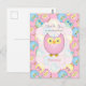 Carte Postale Thème pour Baby Shower Fille Chouette Rose Pâle