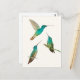 Postcard for hummingbird lovers featuring a hand-painted Versicolored Emerald Hummingbird and two Rufous-tailed Hummingbirds.
