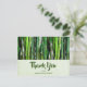 Carte de remerciement avec un thème asiatique. Une photographie d'une rangée de tiges de bambou vert et vert jaunâtre.