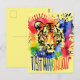 Carte Postale Tigre coloré aquarelle drôle