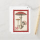 Cette carte postale est ornée d'un timbre au design de champignon rouge.