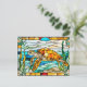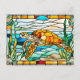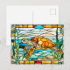 Carte Postale Tortue de mer en vitrail nageant dans l'océan