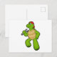Carte Postale Tortue en mécanicien avec clé à écrou et casquette