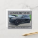 Carte postale avec la photo d'un véhicule disant, "Toujours en déplacement, vous attrapez dans la ville suivante."