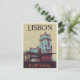 Un grand cadeau pour tous les amoureux de Lisbonne idéal pour offrir ou envoyer à un ami, jolie carte postale illustration originale rétro avec vue sur la tour Belem Lisbonne Portugal