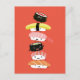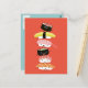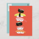Une pile kawaii de personnages de sushi. Les amis sushi comprennent tamago, ebi nigiri, sashimi de saumon, tako et maguro. Cette carte postale d'art culinaire humoristique est idéale pour les envois personnels ou professionnels. Visitez le monde de doodle de Jenn pour encore plus d'illustrations humoristiques sur cartes, cartes postales et cadeaux.