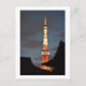 Une photographie de l'emblématique tour de Tokyo illuminée un soir d'été et encadrée par les bâtiments de l'historique temple Zojo-ji.