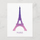 Ce design présente une tour Eiffel abstraite en violet et rose.