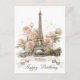 Un design de carte de vœux élégant et romantique avec une belle illustration de style aquarelle de la Tour Eiffel. Le monument parisien emblématique est entouré de roses pastel rose et crème douces et accentué de délicates paillettes dorées. Personnalisez avec votre propre texte la bannière de ruban en bas de l'affiche.