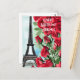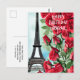 Carte Postale Tour Eiffel Roses rouges Joyeux Anniversaire Roman