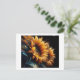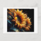 Des tournesols vibrants affichent des coups de pinceau dynamiques et tourbillonnants d'orange et de jaune, contrastant avec des teintes de bleu foncé et de noir. La composition transmet un sentiment de mouvement et d'énergie, avec une signature dans le coin supérieur.