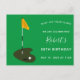 Tournoi de golf 50th Birthday Party Invitation. C'est pour tous les golfeurs dont le club de golf aura 50 ans cette année ! Faites une partie de golf dans votre club favori et fêtez l'anniversaire de votre ami après le club-house. La carte postale présente une illustration moderne d'un green de golf avec un drapeau orange, un trou de balle de golf. Vous pouvez modifier l'arrière - plan vert, les polices, les couleurs de police et les tailles à votre goût. Tournez devant le par-tee !