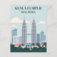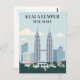 Découvrez le cœur vibrant de l'Asie du Sud-Est avec cette carte postale élégante de Kuala Lumpur en Malaisie, mettant en valeur l'horizon emblématique de la ville ! Cette carte postale d'art moderne élégante présente les majestueuses tours jumelles Petronas dressées fièrement sur un fond de gratte-ciel contemporains et de palmiers verdoyants, sous un ciel bleu serein. Les lignes épurées et la palette de couleurs apaisantes font de cette carte postale un hommage raffiné à la capitale dynamique de la Malaisie.