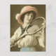 Photo colorée vintage d'une jolie jeune femme tenant une raquette de tennis.