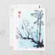 Le titre de cette pièce est : "Tout ira bien." Lavages bleus avec fleur de prune à contraste élevé et bambou au premier plan. Fait un publipostage artistique et exceptionnel. Art de Ren Adams.