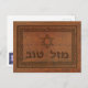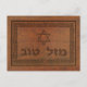 Comprend une "sculpture sur bois" générée par ordinateur par un Magen David (Étoile de David), un texte hébreu lisant "Mazel Tov", et une bordure florale. Alors que mazel tov se traduit par "bonne chance", comme l'utilisent les juifs, cela signifie "bonne chance s'est produite" ou "bonne fortune" et c'est une reconnaissance de ce fait (c'est-à-dire "chanceux"). L'expression "mazel tov !" fait écho à l'utilisation de l'expression "félicitations !" et dit à peu près que "je suis heureux que cette bonne chose vous soit arrivée !" Alors que la prononciation yiddish de mazel a le stress sur la première syllabe, le mot hébreu moderne "mazal" a le stress sur la dernière syllabe, comme c'est le cas en hébreu moderne.