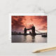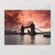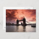 Un long plan de Tower Bridge à Londres sous un ciel rouge orageux.
