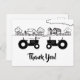 Cette carte de remerciement noir et blanc représente deux tracteurs en silhouette amoureux. Ils sont représentés sur un charmant dessin au trait de ferme rurale.