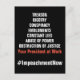 Texte avant : #ImpeachmentNow Retour Texte : Trahison. Bigoterie. Conspiration. Les émoluments. Mensonges Constants. Abus de pouvoir. Obstruction à la justice. Votre président au travail. Police blanche et rouge sur un arrière - plan noir. Personnalisable . La résistance continue.