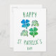 Carte de vœux Trèfle Shamrock vert Joyeuse St. Patrick. Carte de St. Patrick. Quatre trèfles dans différentes nuances de vert. Joyeuse fête de la Saint-Patrick à votre famille, vos amis et autres. Trèfles à quatre feuilles pour la chance.