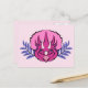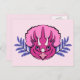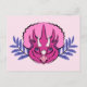 Un portrait de tricératops rose et violet ceinturé de feuilles violets abstraits orne cette jolie carte postale.