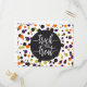 Offrez une Halloween Spooktaculaire avec des Invitations de cartes postales personnalisées - Trick or Treat Cute Halloween design avec des Pois orange, vert, violet et noir. Avec fun Modern Brush Font & Hand Drake Doodles - Happy Halloween!