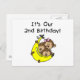 Trois petits singes, deux garçons et une fille, et une grande banane jaune sur le 2ème T-shirts d'anniversaire de triplets, les combinaisons, les sacs fourre-tout, les cartes, les autocollants, le magnet, et beaucoup plus.