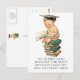 Mignonne, illustration vintage d'un petit érudit en lunettes, portant sa casquette de fin d'études, assis sur une pile de livres et de lecture. S'il vous plaît, écrivez-lui immédiatement ! Art par Charles Twelvetrees