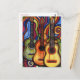 Un dessin au crayon coloré de trois guitares avec la musique.