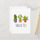 Une carte postale de remerciement amusante avec une illustration fantaisiste représentant 3 petits cactus heureux assis dans leurs propres pots de fleurs. Chacun d'eux a sa propre expression unique, souriant et ayant l'air heureux.