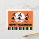 Un design mignon et amusant pour souhaiter à la famille et aux amis une Halloween joyeuse avec trois mignonnes sorcières volant sur des baguettes devant une pleine lune éclatante et un ciel orange avec une garniture rayée verte, noire et blanche accrocheuse au fond de la carte postale. La carte postale a "Happy Halloween" écrit en lettres de cailloux de sang avec goutte de sang au bas de chaque lettre. Si vous désirez un texte différent, veuillez nous contacter par l'intermédiaire du magasin CelebrationBazaar et nous serons heureux de le créer pour vous. Visitez le magasin CelebrationBazaar pour voir la collection de papeterie, de souvenirs et de faveurs de fête avec ce joli design d'Halloween.