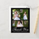 Cette élégante carte de remerciement pour la Première Communion catholique présente un collage de trois photos sur le devant avec une jolie typographie blanche sur fond noir, un doux message de remerciement éditable est au dos avec une simple croix dorée et l'adresse de retour. Cette carte de remerciement pour la Première Sainte Eucharistie est modifiable pour diverses occasions religieuses chrétiennes, ou pour mettre à jour votre propre message de remerciement personnel. Cette carte est également disponible en blanc et or.
