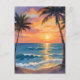 Tropical Ocean Sunset Palm Tree Watercolor Postcard