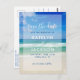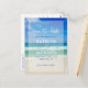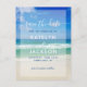 Cette belle plage, à l'exception de la carte postale date, dispose d'une magnifique photo des vagues de l'océan pour un mariage de destination. Jolie photographie de plage associée à une élégante typographie blanche et bleue crée des cartes postales chic et modernes à un événement d'île tropicale.