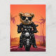 Carte postale Tropical Sunset Motorcycle Ride. Un mignon ours rebelle à moto.