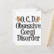 Pembroke welsh corgis sont sans aucun doute la meilleure race de chiens ! J'adore mon corgi. Ils sont tellement mignons avec leurs petites jambes courtes et leurs bas de lapin. Cette drôle de carte postale obsédée par le corgi sera un grand ajout à un cadeau pour un propriétaire.