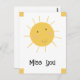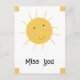 Grand soleil souriant en jaune vif avec le mot 'Tu me manques'. Cliquez sur personnaliser si vous souhaitez modifier le texte. Utilisez cette carte pour quelqu'un que vous manquez et que vous avez hâte de revoir. Remontez le moral de quelqu'un et rendez-le heureux.