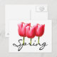 Célébrez le printemps avec cette carte postale représentant un trio de tulipes de couleur rose avec un design de texte "Printemps".