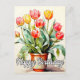 Cette carte d'anniversaire mignonne présente une illustration de quelques belles tulipes en pot. N'hésitez pas à ajuster toutes les options disponibles comme vous le souhaitez.