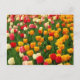Une mer de belles tulipes rouges, blanches et oranges en pleine floraison.