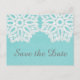 Simple et sophistiquée, cette carte postale en dentelle élégante pour annoncer votre mariage présente un motif de nappe en dentelle blanche sur un fond de papier turquoise clair de style vintage. Cette carte postale classique et élégante est parfaite pour annoncer un mariage rustique. Facile à personnaliser avec vos informations de mariage. Cliquez sur "Personnaliser" pour trouver plus d'options de personnalisation.
