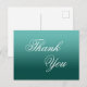 Message « Merci » personnalisable en écriture calligraphique fantaisie blanche. Carte postale avec fond ombré sarcelle claire et turquoise foncé. Cartes postales avec dégradé de sarcelle verdâtre monochrome. Police élégante pour mariages, enterrements de vie de jeune fille et baby showers et autres événements. Personnalisez les couleurs du fond et de la police.
