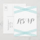 Simple et élégant Modern Deco Mariage Response Carte postale avec un design art déco rayé croisé à éclos en turquoise. Cette carte postale classique RSVP peut être facilement customisée avec vos détails mariages. Pour plus d'options de personnalisation, cliquez sur le bouton Customiser.