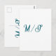 Carte Postale Turquoise monogram wedding couple name simple styl