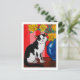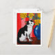 Carte Postale Tuxedo chat avec des jonquilles dans un vase bleu