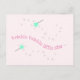 Nouvelle carte postale sur le thème de la fée magique - Pour féliciter ou annoncer la naissance d'une petite fille, de couleur rose blush, avec des baguettes magiques de fée princesse de couleur vert sarcelle, et une citation de comptine 'Twinkle twinkle little star' en rose chaud.