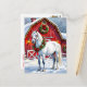 Carte Postale Un Cheval Blanc Festif et une Grange d'hiver Noël