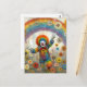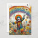 Carte Postale Un clown mignon dans une prairie arc-en-ciel